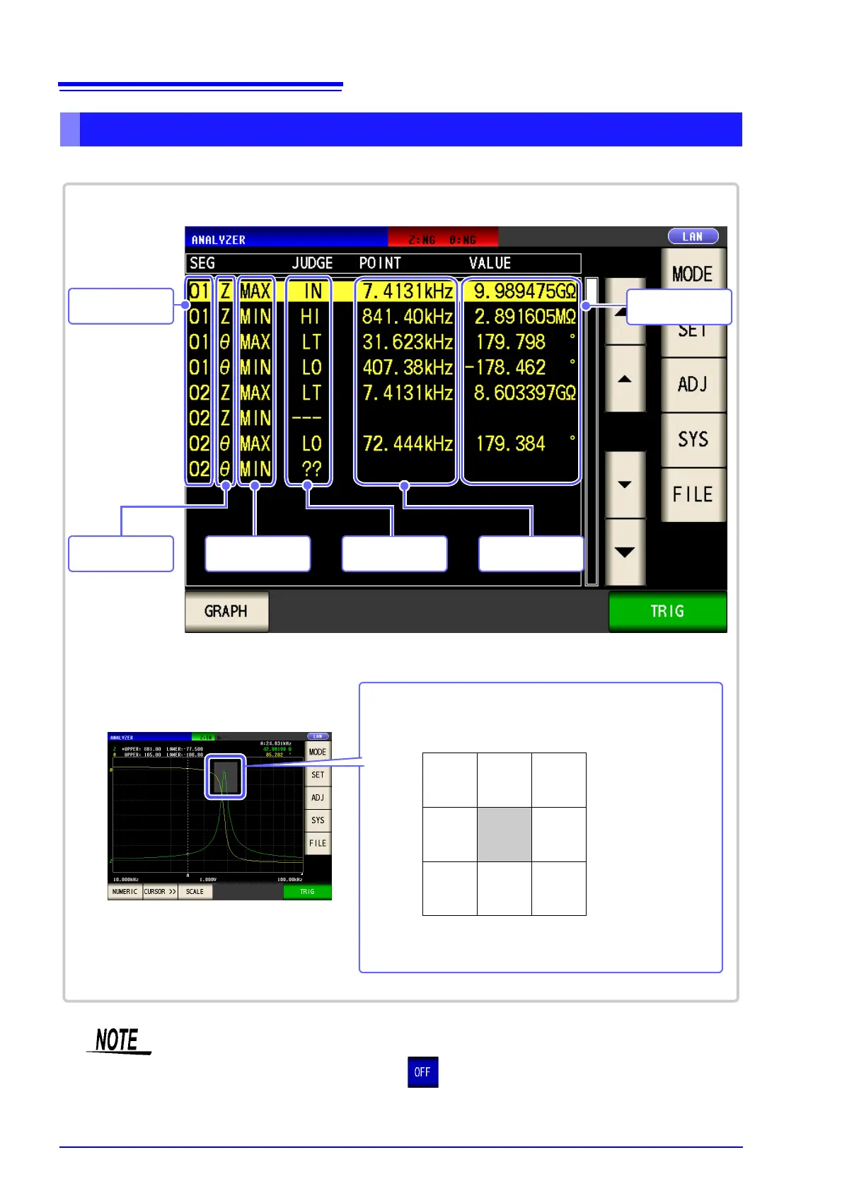 • When the judgment area setting is , the judgment result is indicated as [- - - ].