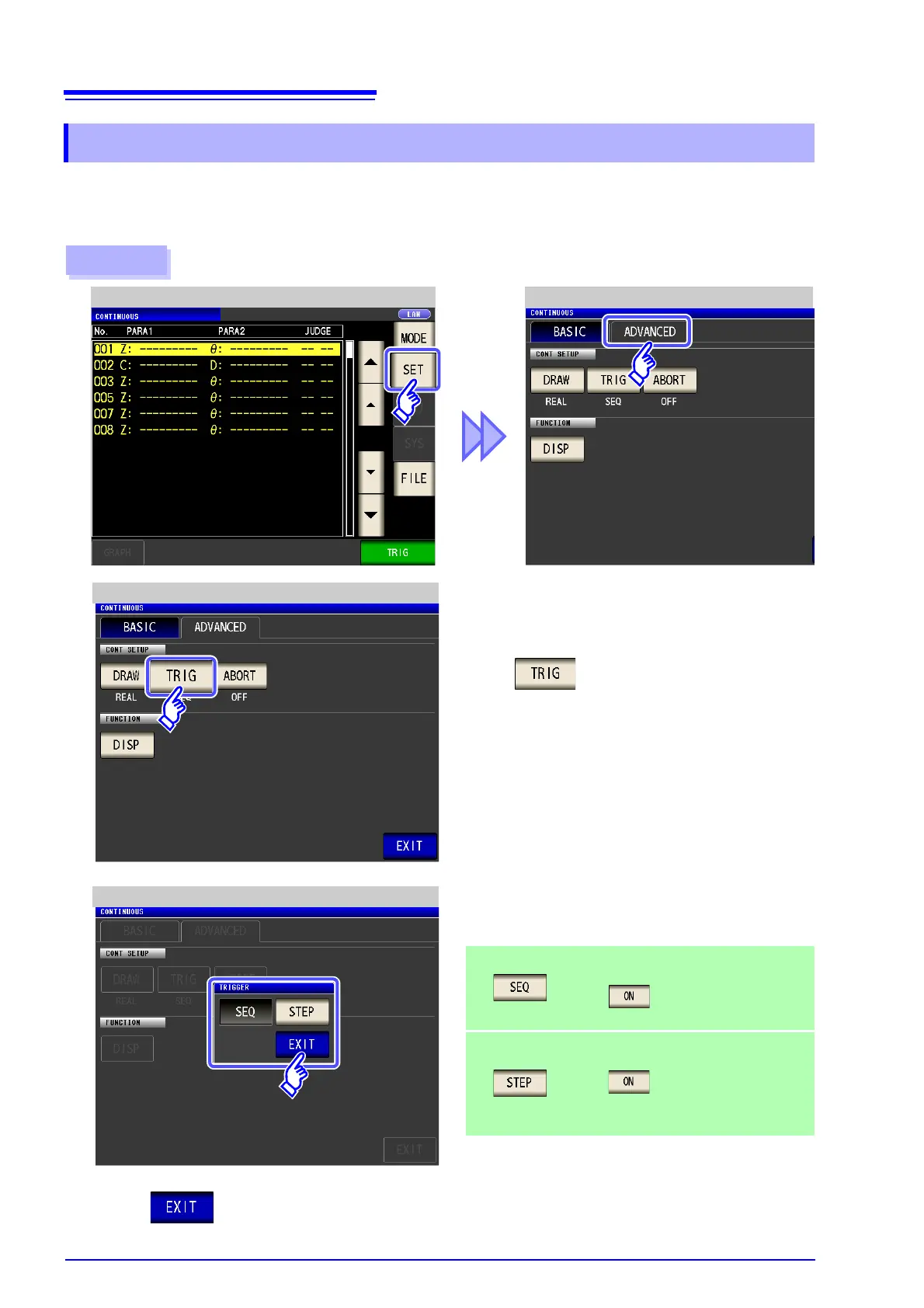 This section describes how to set the trigger. In continuous measurement mode, measurement will be per-