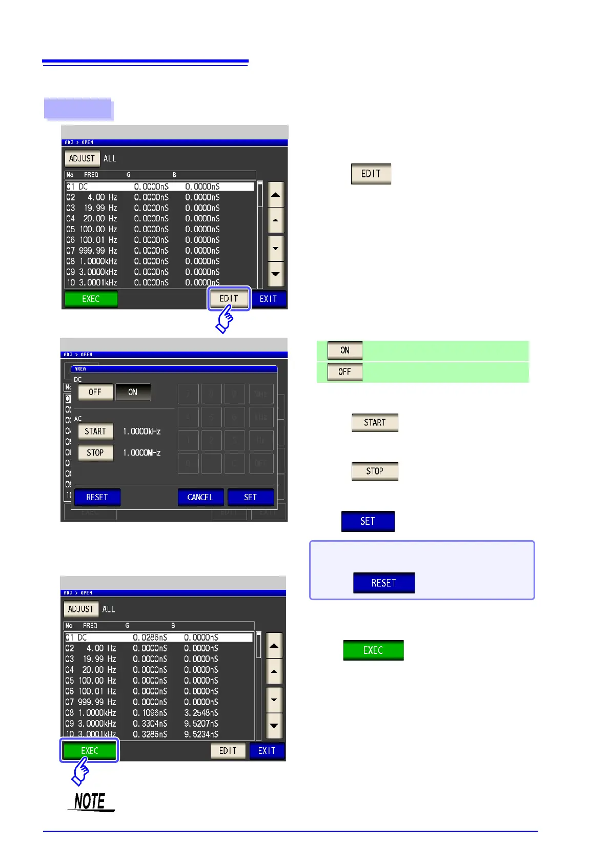 Performs DC open compensation.