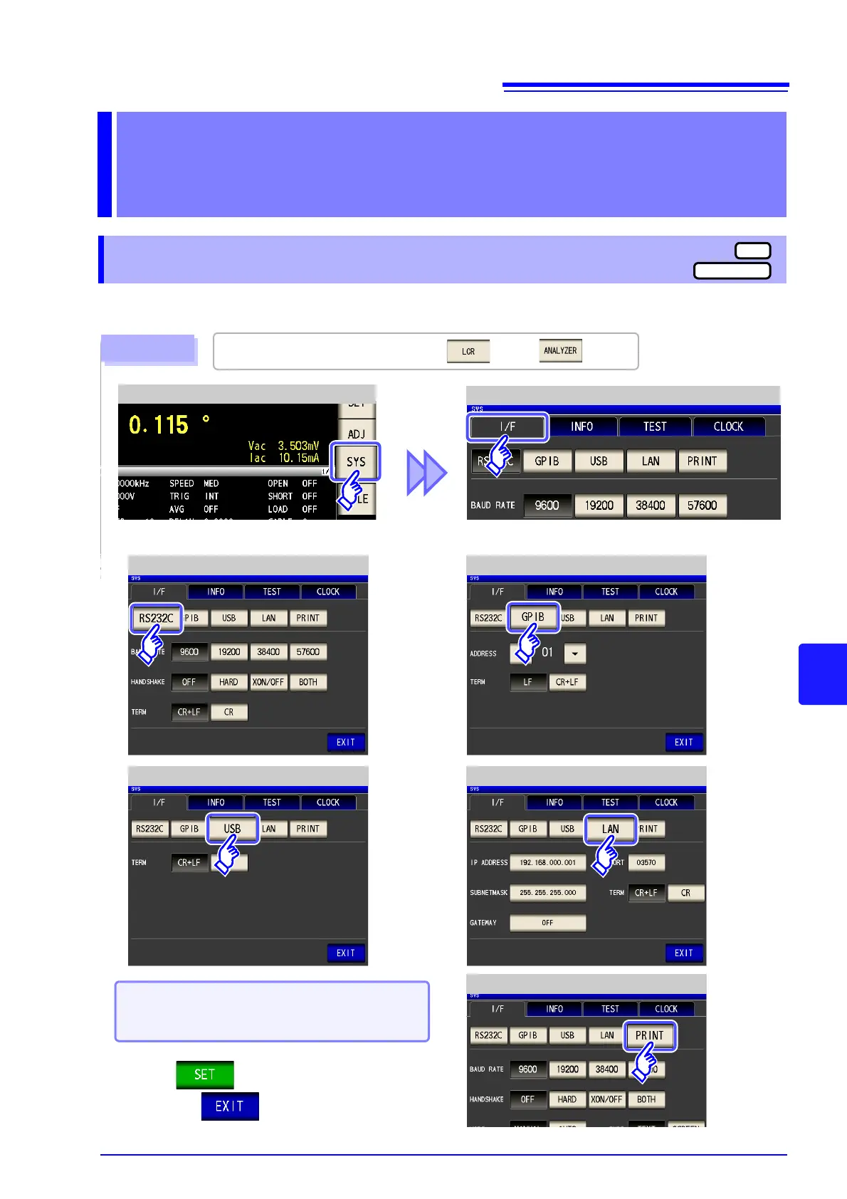You can control the instrument from a computer via the GP-IB, RS-232C, USB, and LAN interfaces. Printing