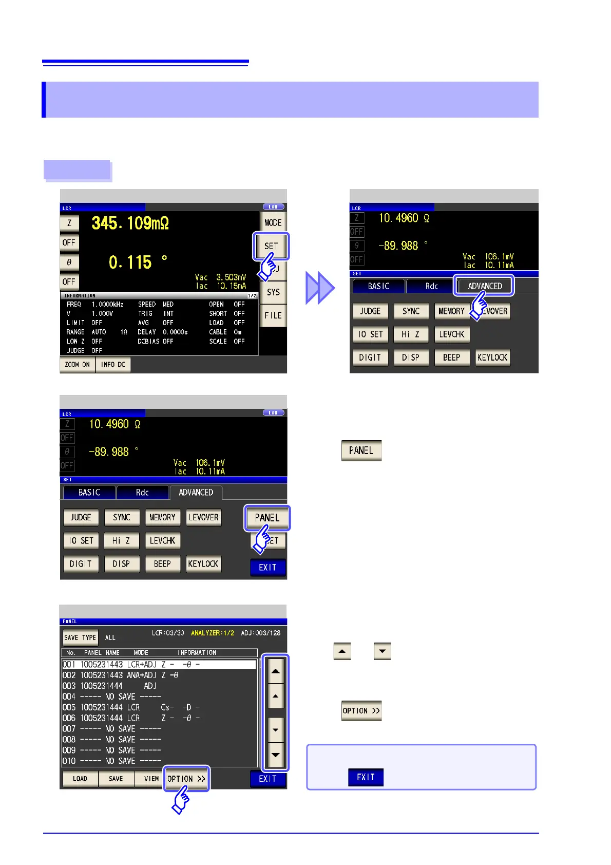 You can change the name of a panel saved to the instrument.