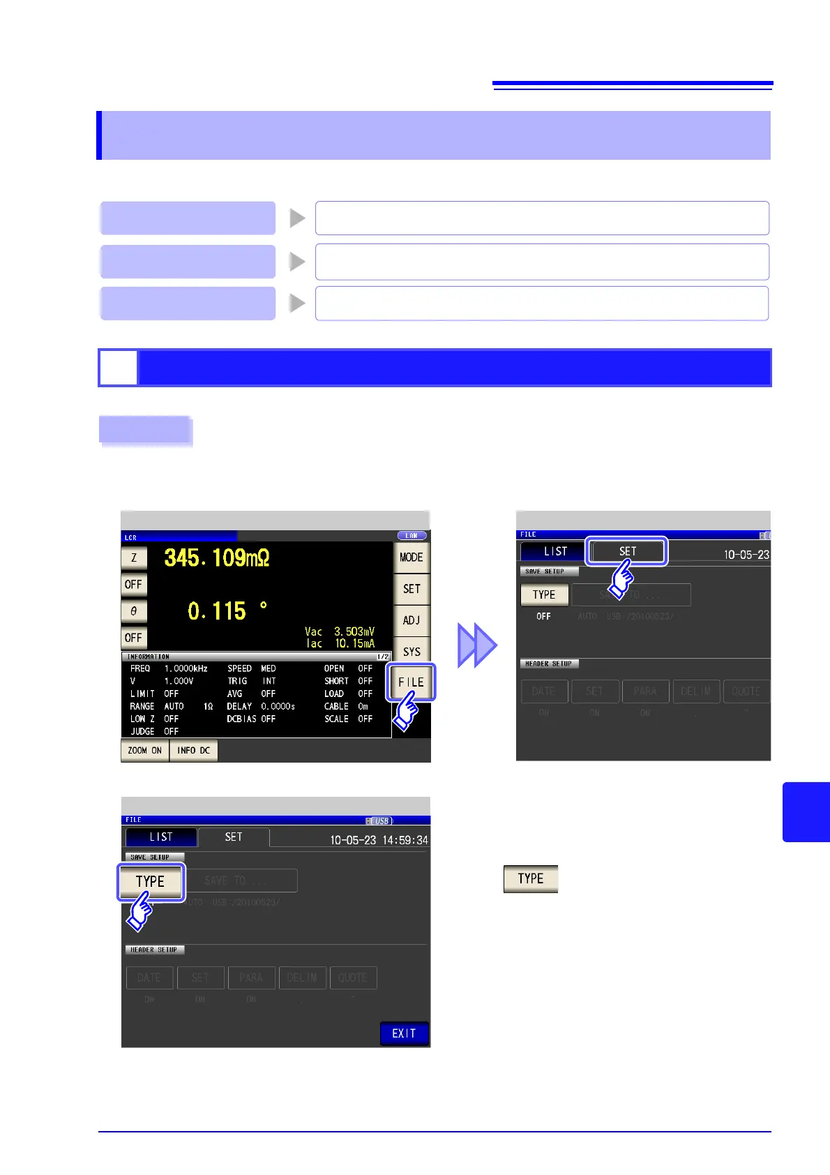 LCR Initial Screen File Save Setting Screen