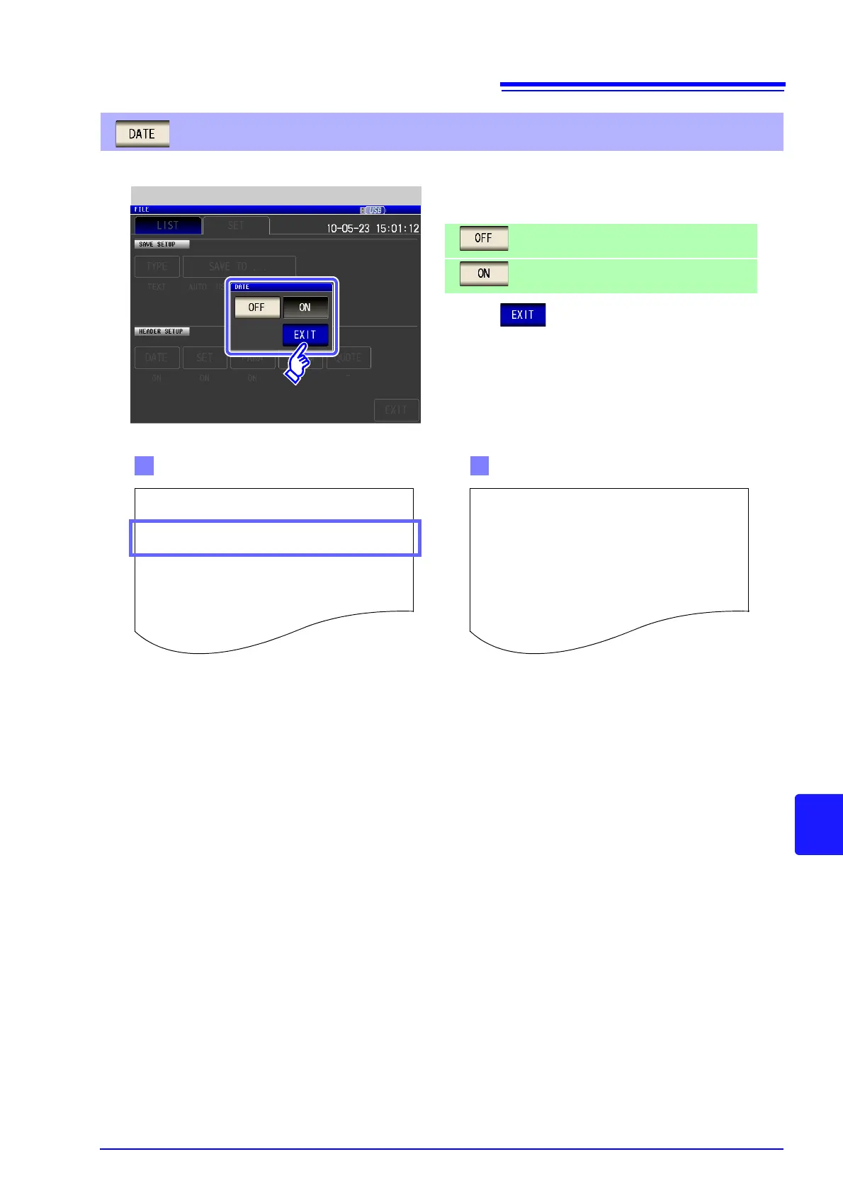 1. Select ON/ OFF for the save date and time.