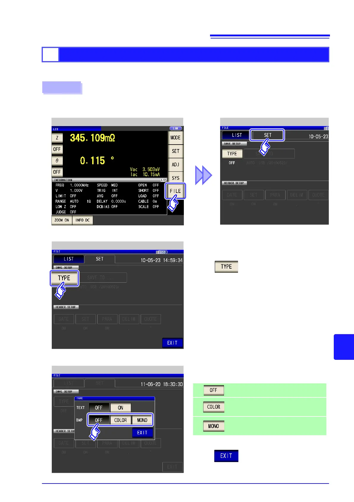 You can save the screen currently displayed to the USB flash drive in bmp file format (256-color or mono-