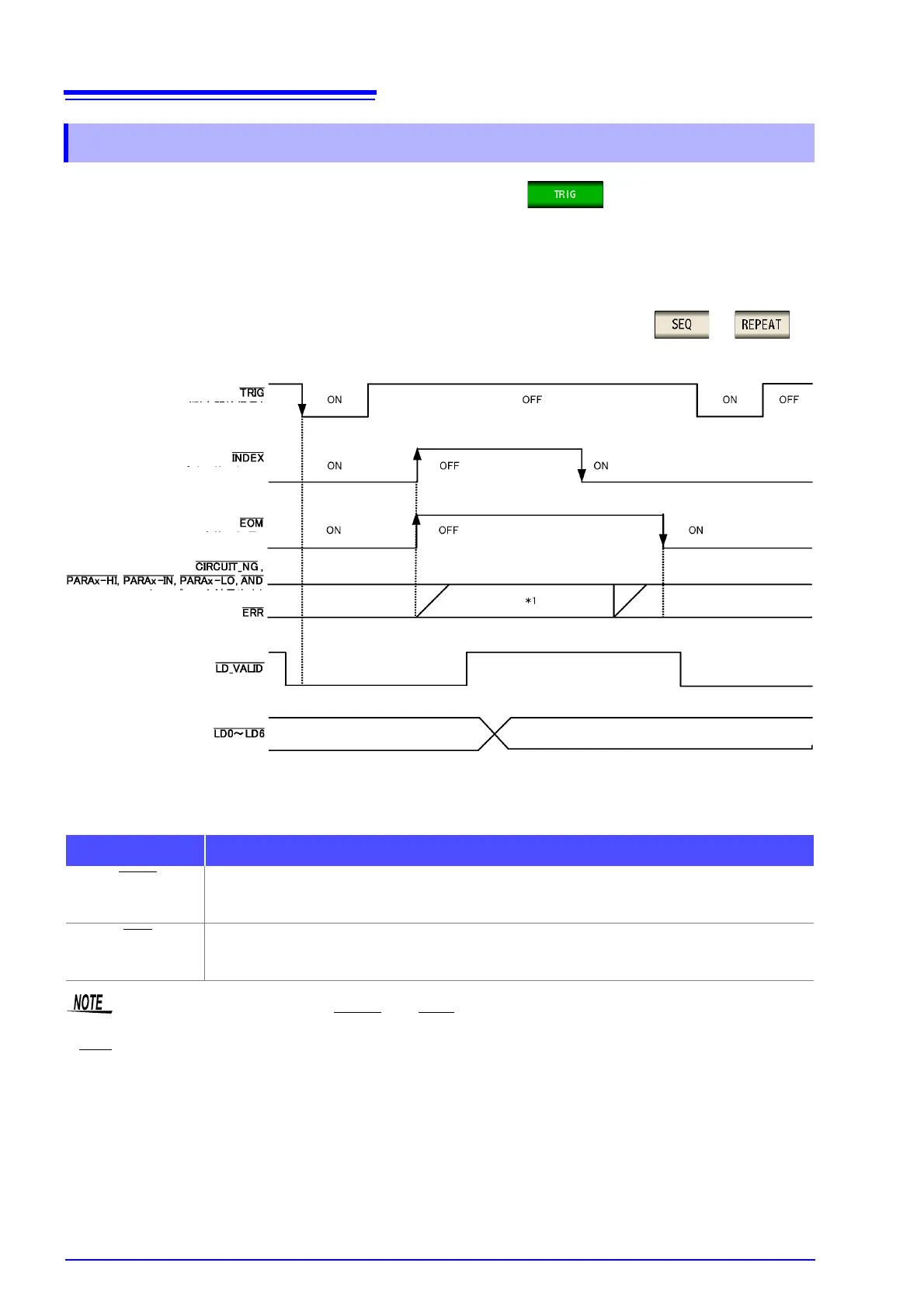 (In the timing examples, the valid edge of the TRIG signal is set to falling (ON).)