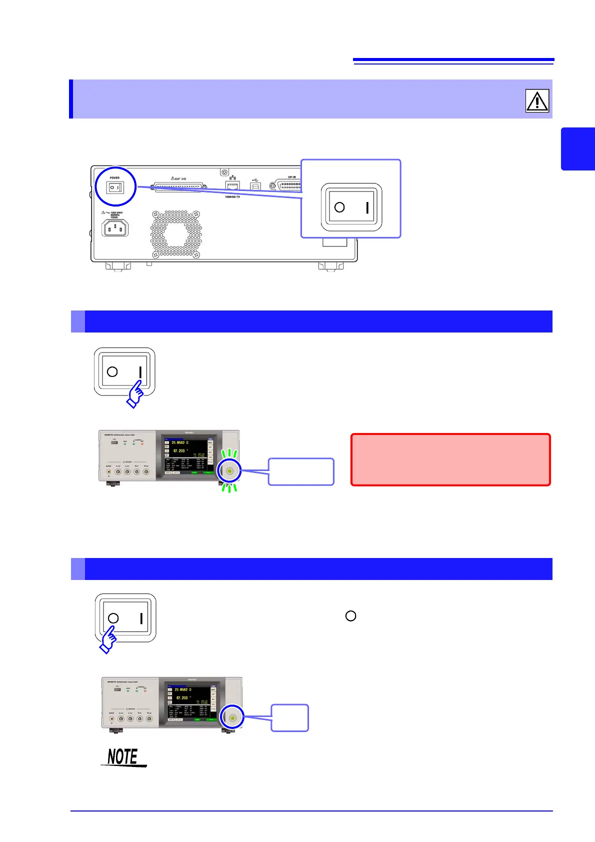 Connect the power cord and voltage and current measurement cables before turning the instrument on.