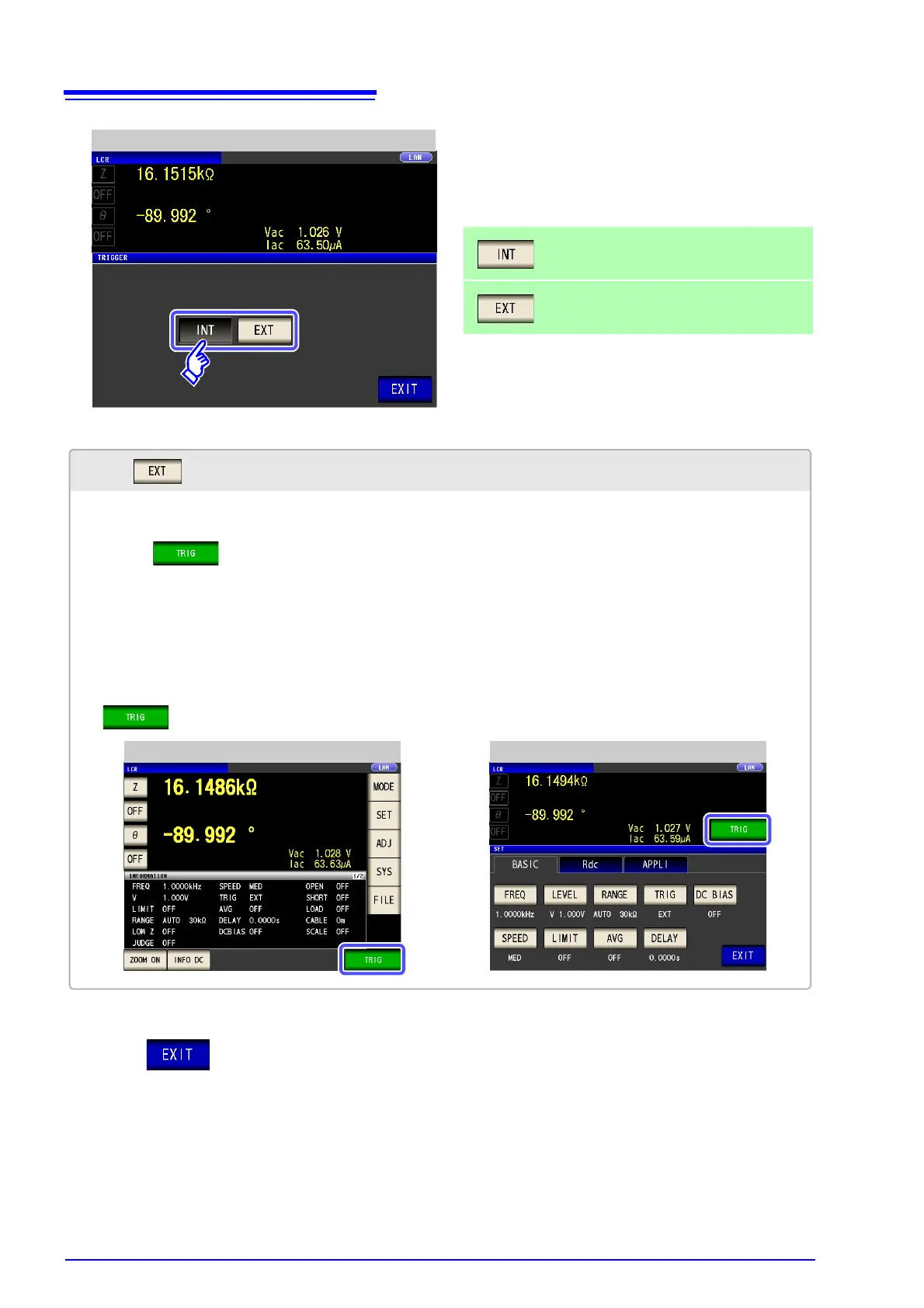• Press on the screen to manually input a trigger: Measurement is performed once.