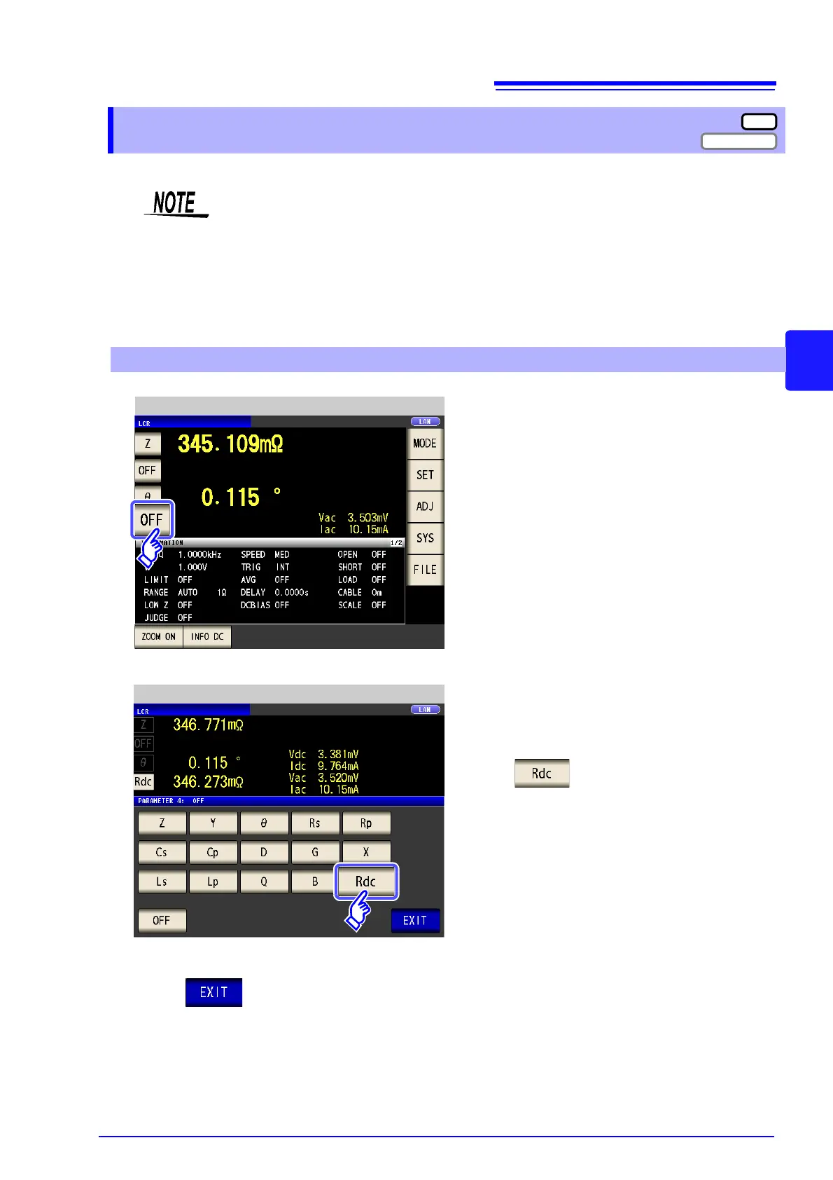 • When Rdc and other parameters are set, the DC resistance is measured after those other