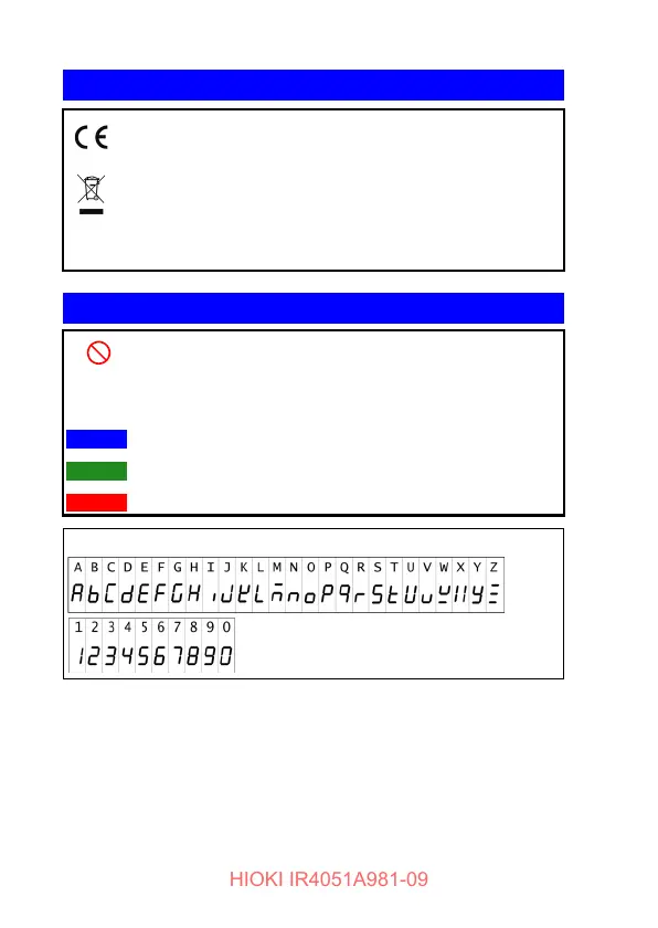 The screen of this instrument displays characters in the following manner.