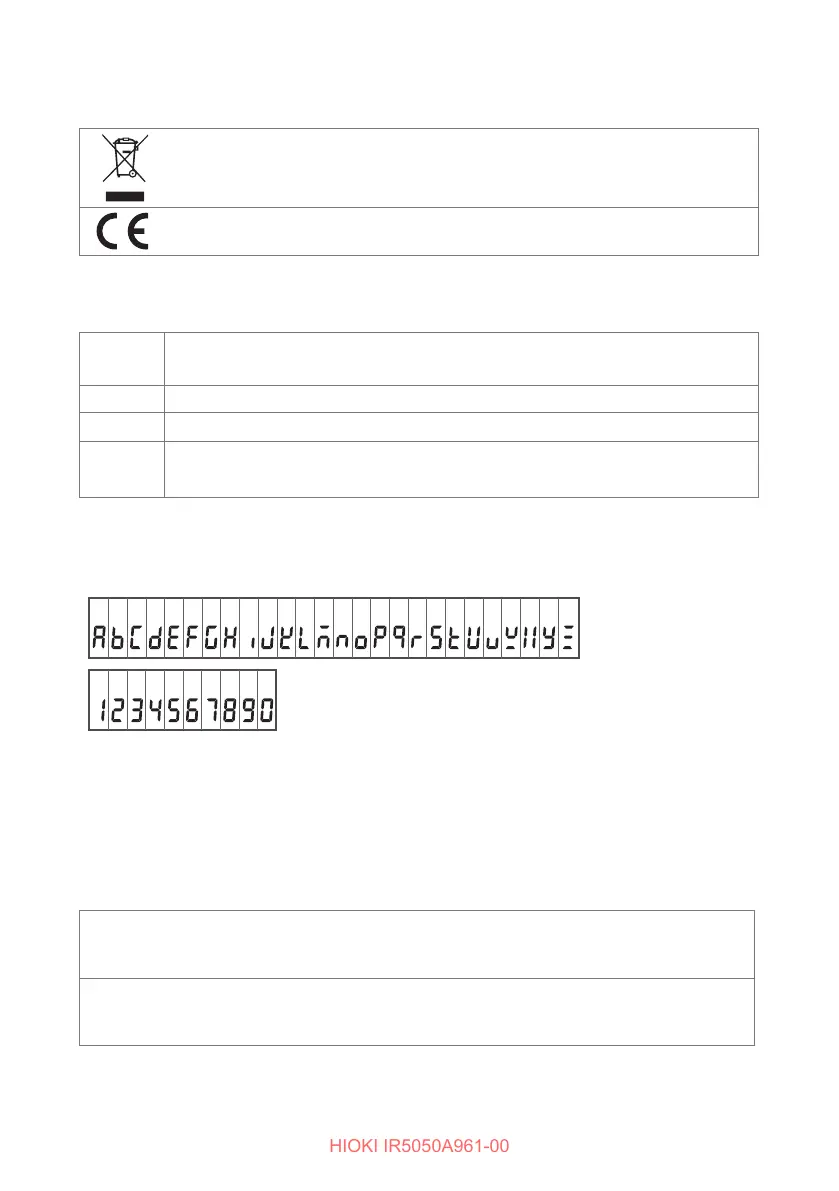 The instrument screen displays the alphanumeric characters as follows.