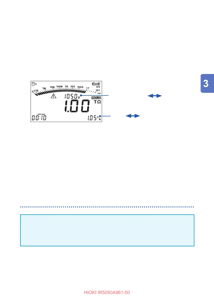 The last measurement is retained ([HOLD] is lit) and voltage generation and