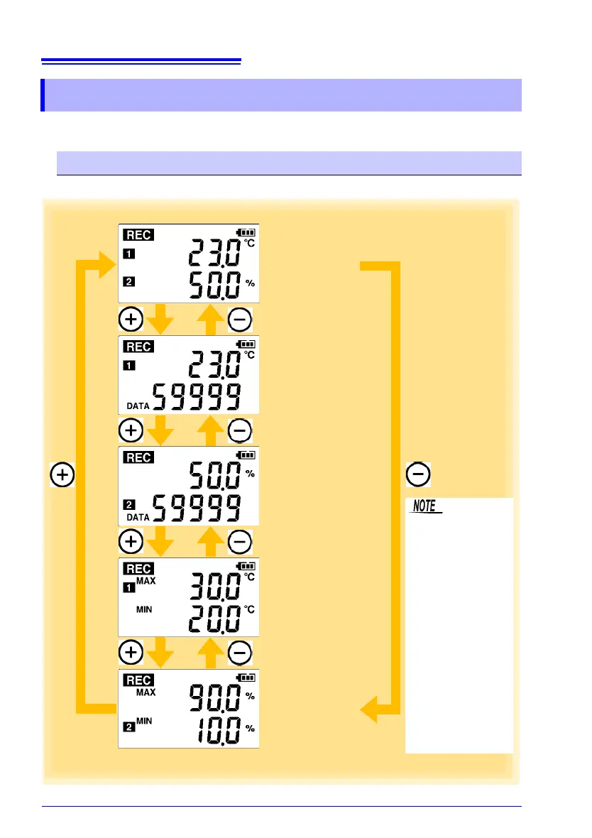 The (+) and (-) buttons switch the display type.