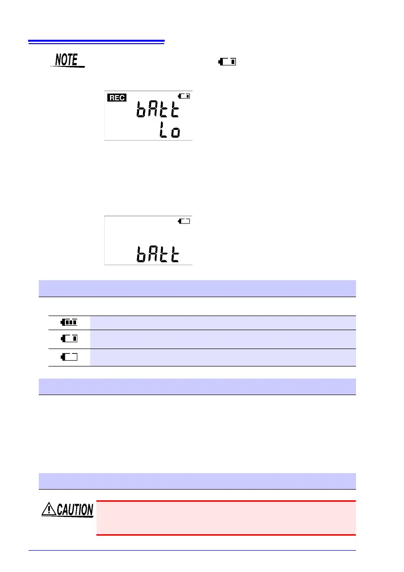 • When battery voltage is too low to operate the logger, the following