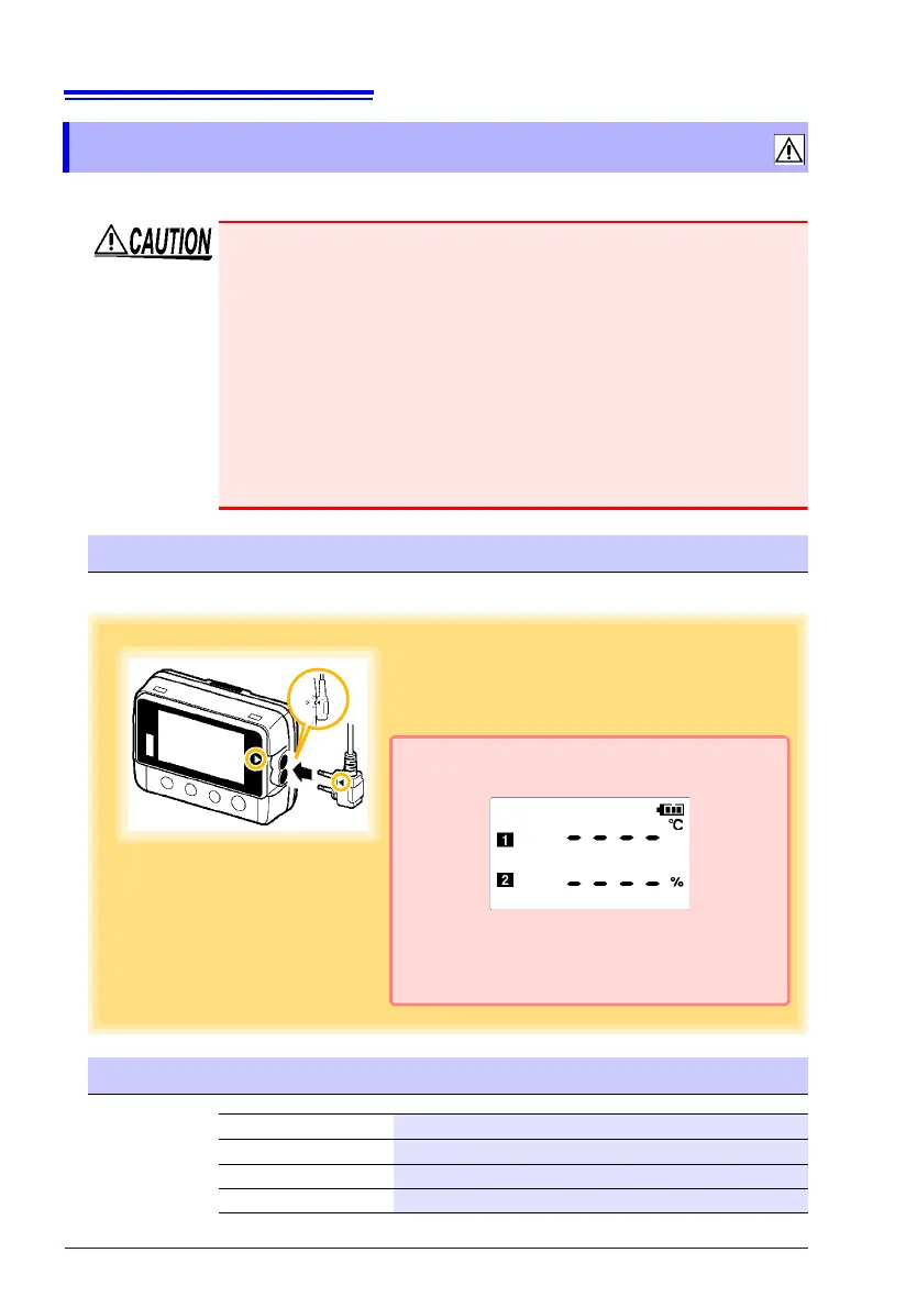 • To avoid damage to the instrument, do not apply voltage to sensor jacks.
