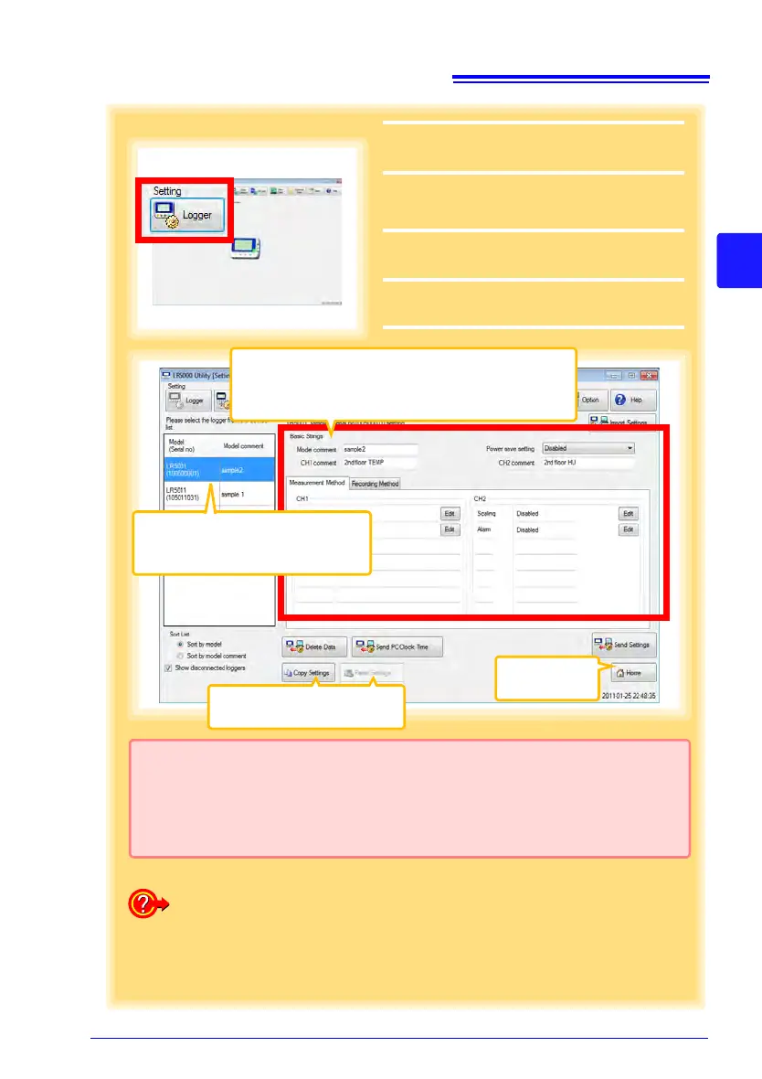 2. Click the [Import Settings to Computer] button. (The logger's settings