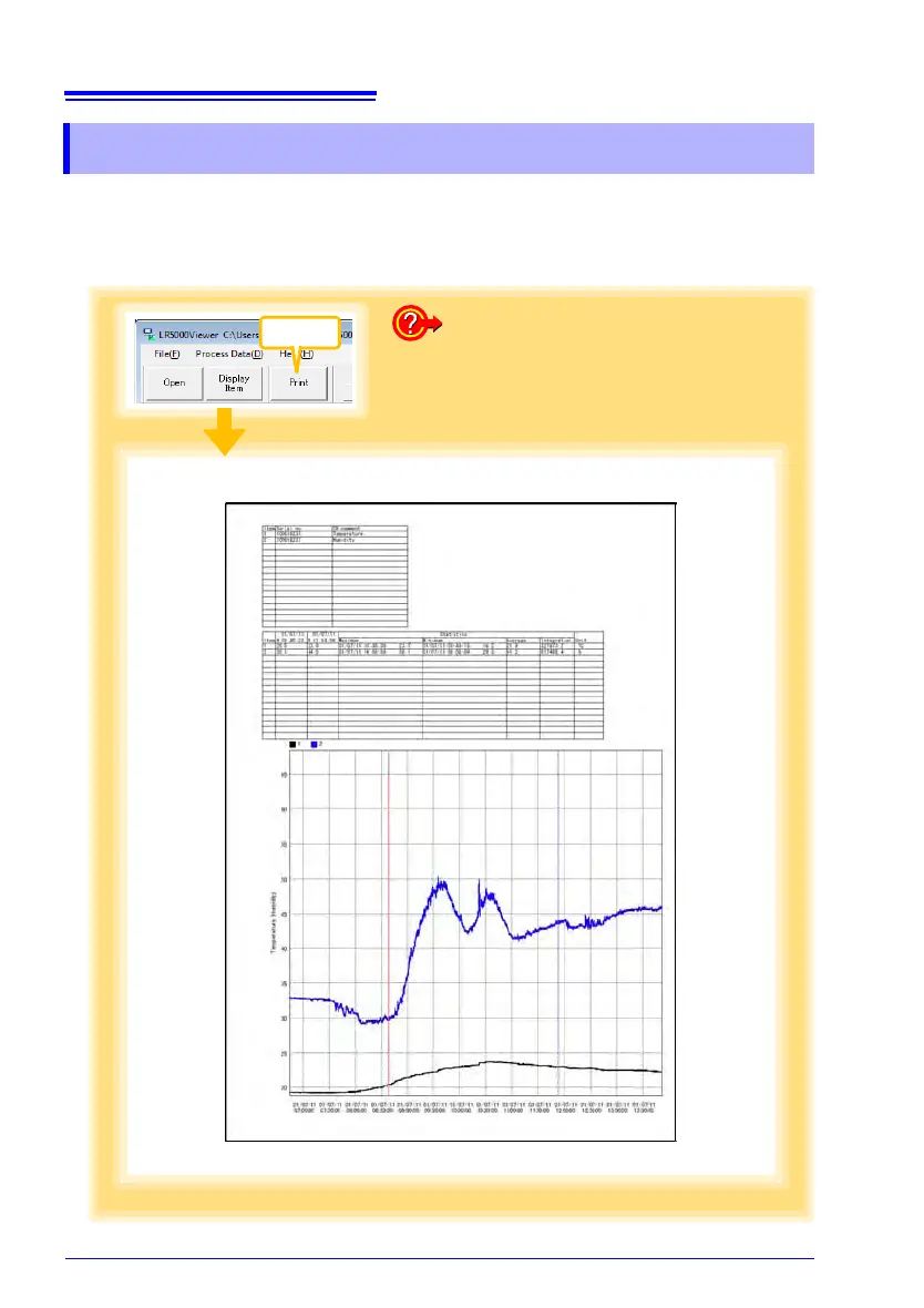 Saved recording data can be printed as a graph or table. Graphs displayed in the
