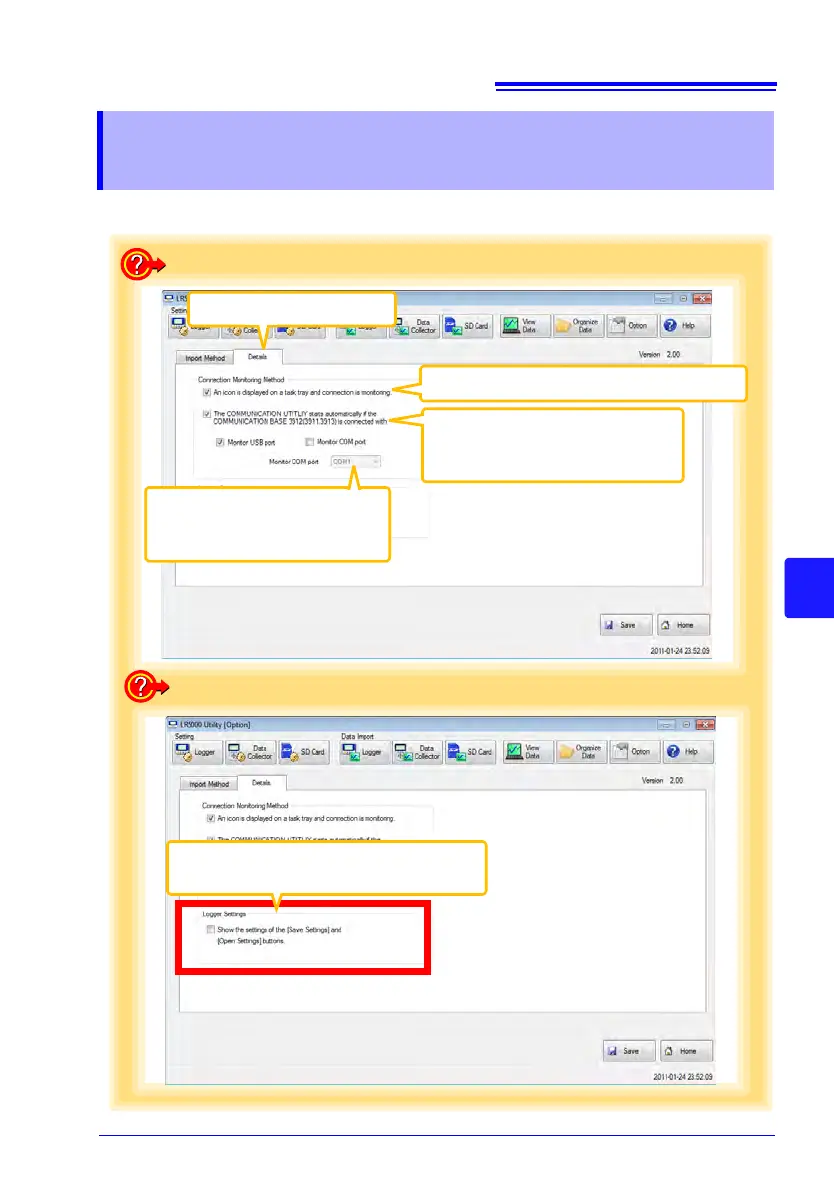 7.2 Changing the Connection Monitoring Method, and Logger Settings Displays