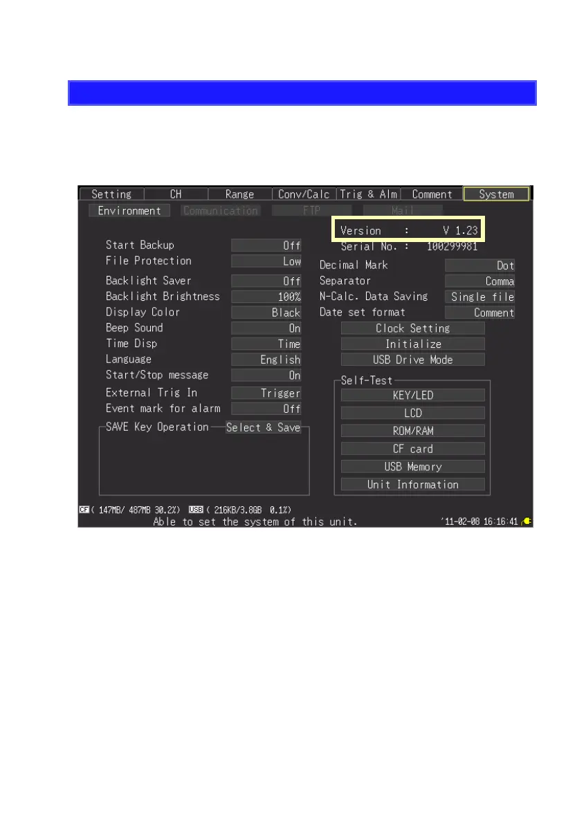 The HiLogger firmware version is displayed at the upper right on the System screen.