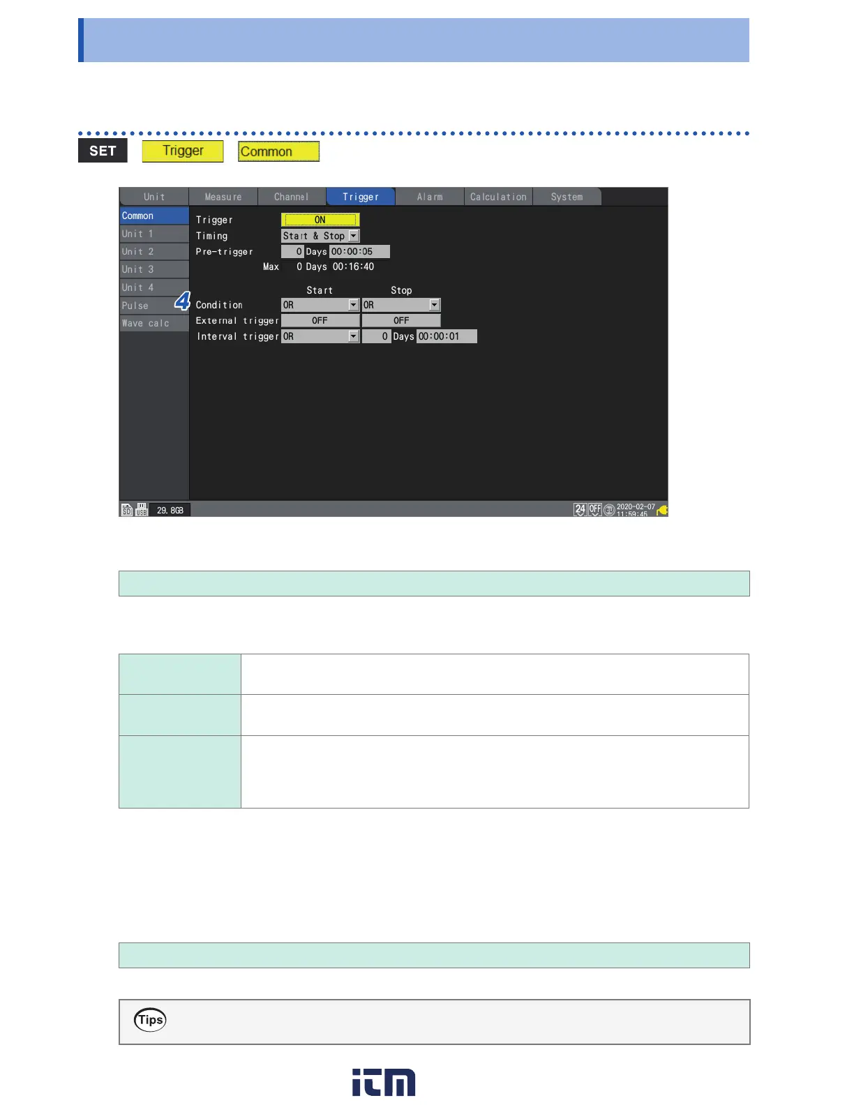 Under [Pre-trigger], set the time or number of days you wish to record before the trigger.