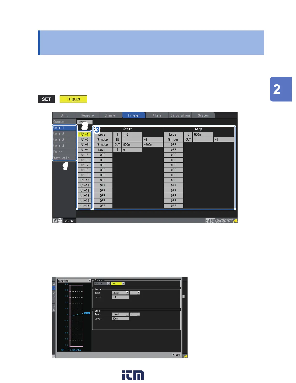 calculation triggers) for the channel you wish to set is selected (m = 1, 2, . . .).