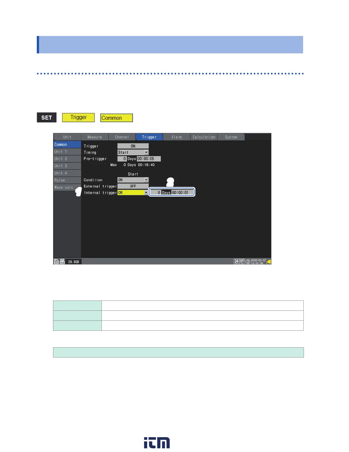 Under [Interval trigger], select the interval trigger conditions.