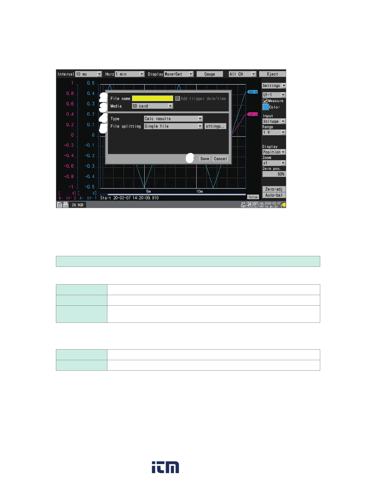 Settings Saves the instrument’s setting conditions.