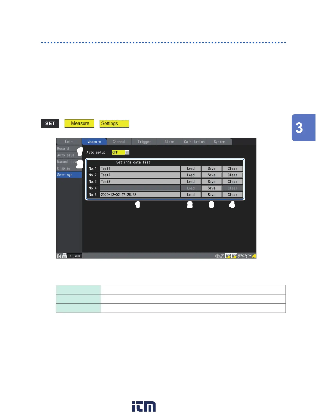 No. 1 to No. 5 Load the settings conditions with the specied group number.