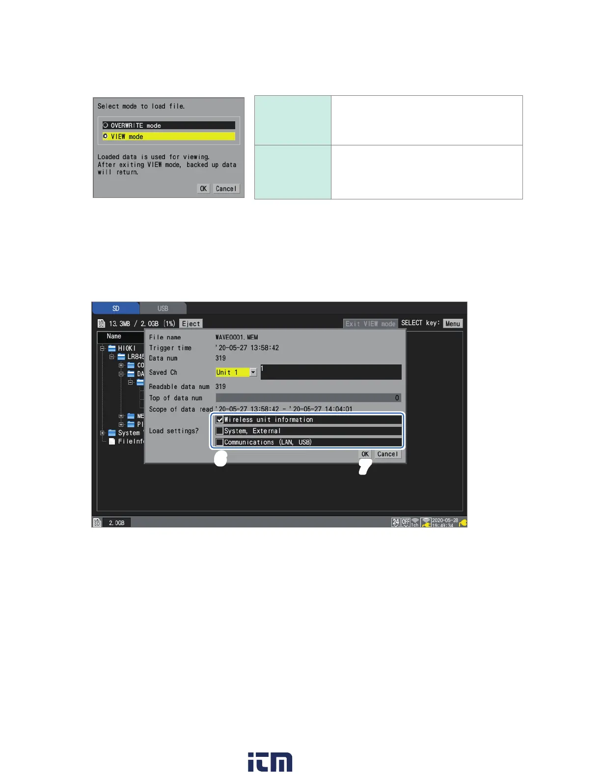 When loading waveform data, information about the saved waveform data will be displayed.