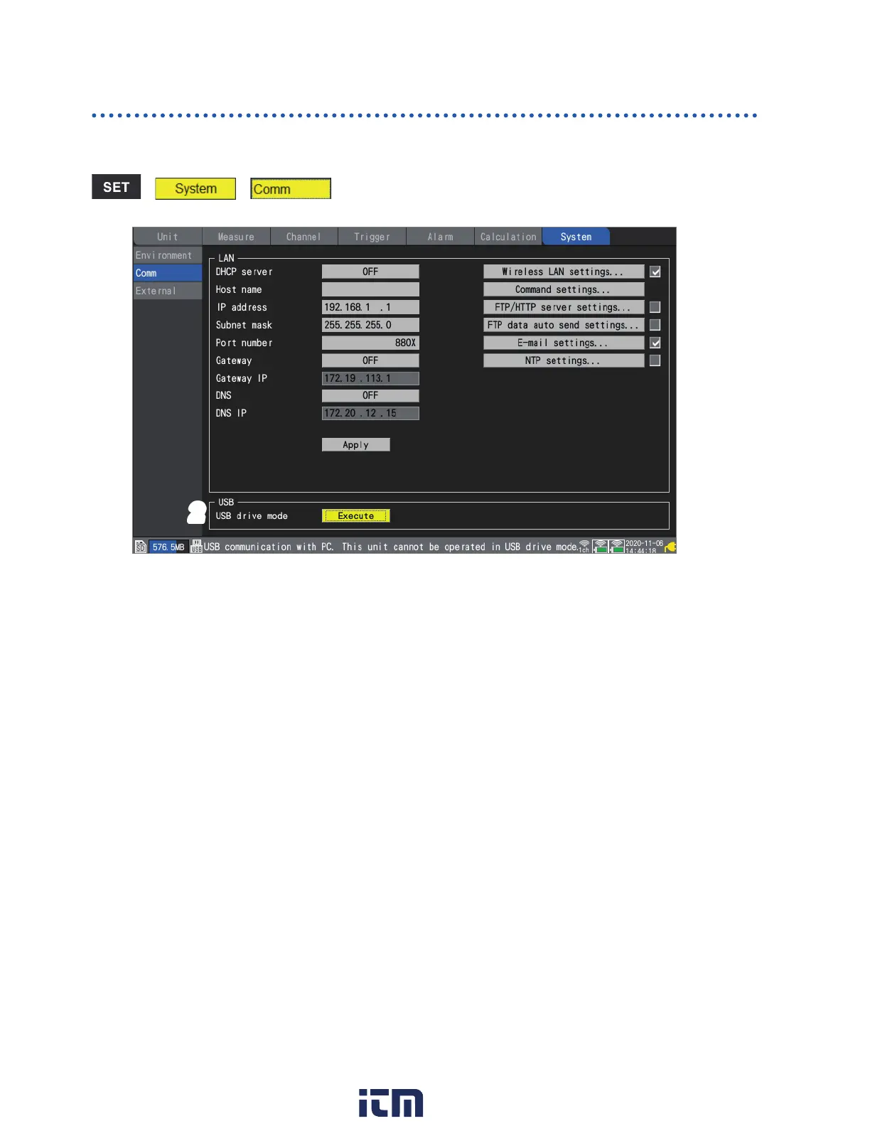 This section describes how to set the instrument to [USB drive mode] in order to communicate