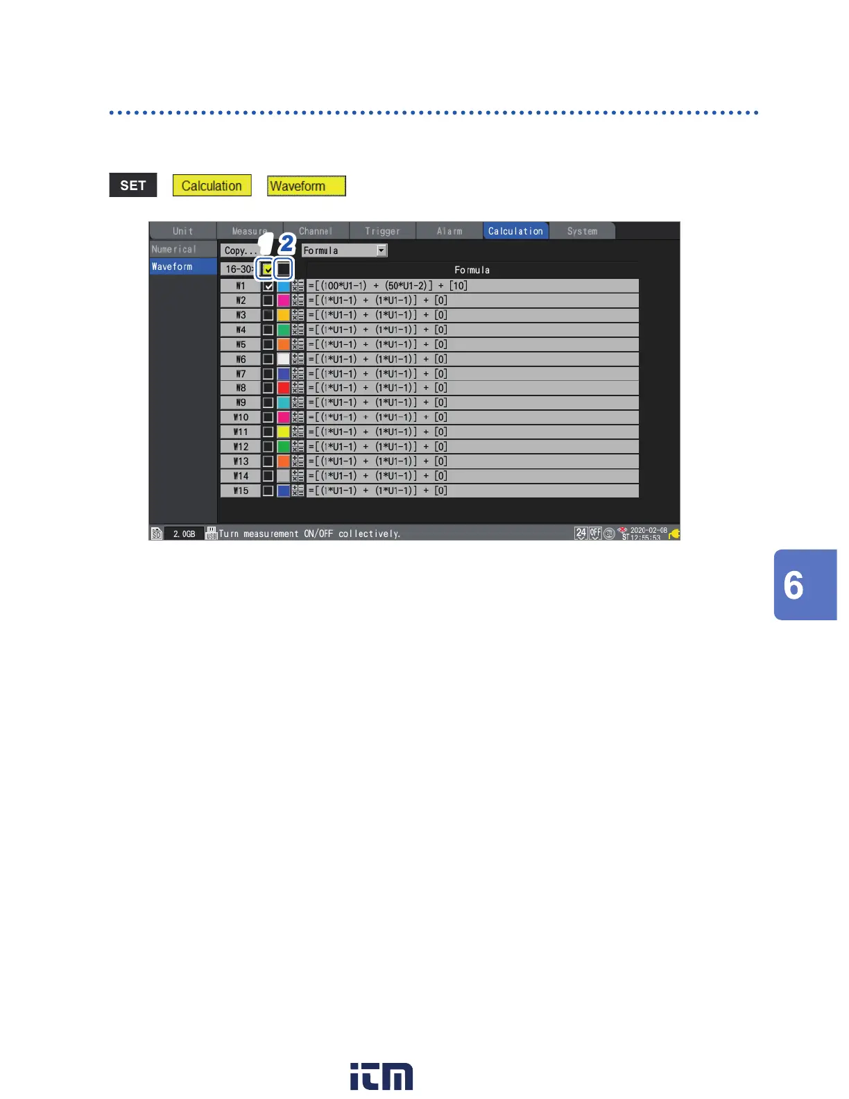 Select the waveform calculation ON/OFF check box and press the ENTER key.