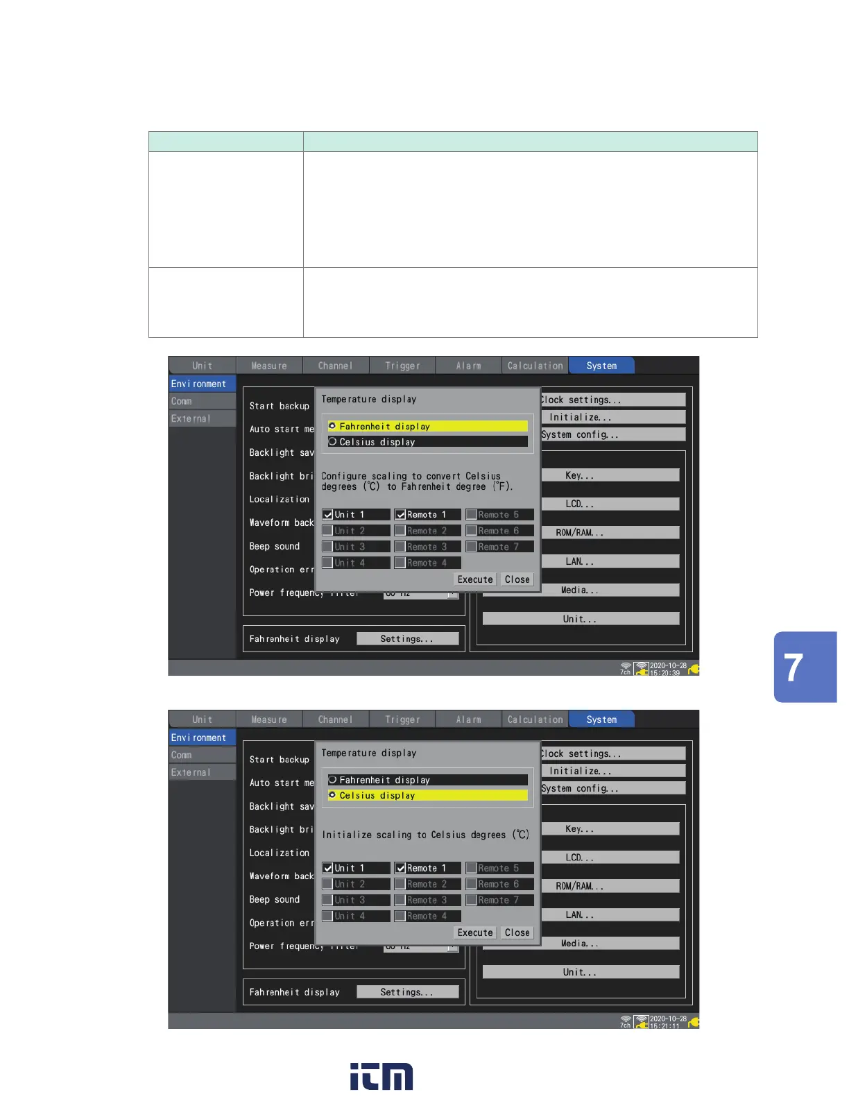 • The Celsius-to-Fahrenheit conversion will apply to channels with the scaling