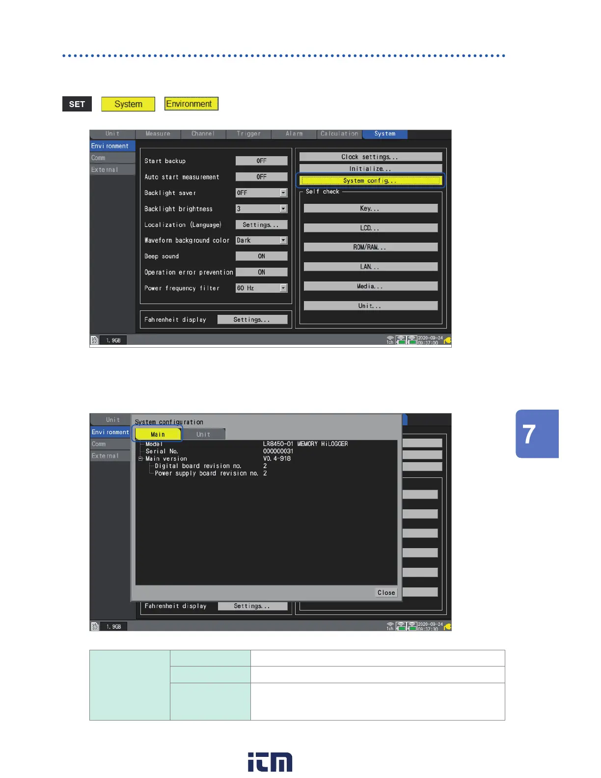 Main Model The instrument’s model number (LR8450 or LR8450-01)