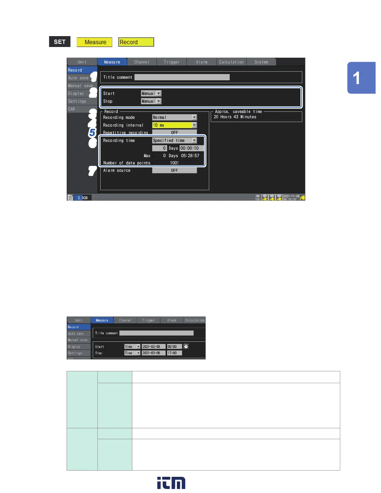 You can stop measurement at the specied time and date. Recording will stop when measurement