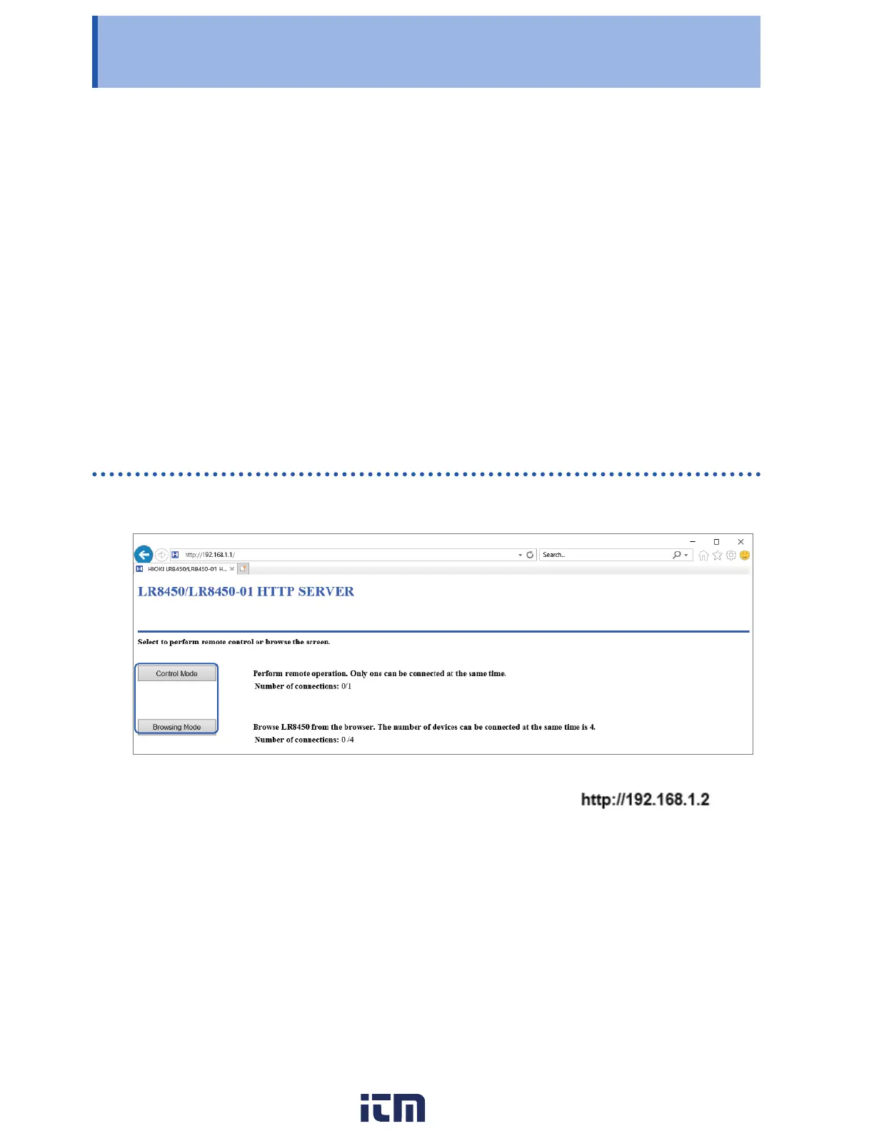 This section describes how to use the instrument’s HTTP server function to control it remotely using