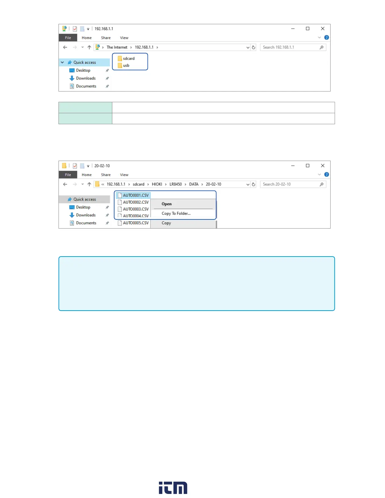 • You can externally access the instrument’s SD Memory Card or USB Drive using the FTP