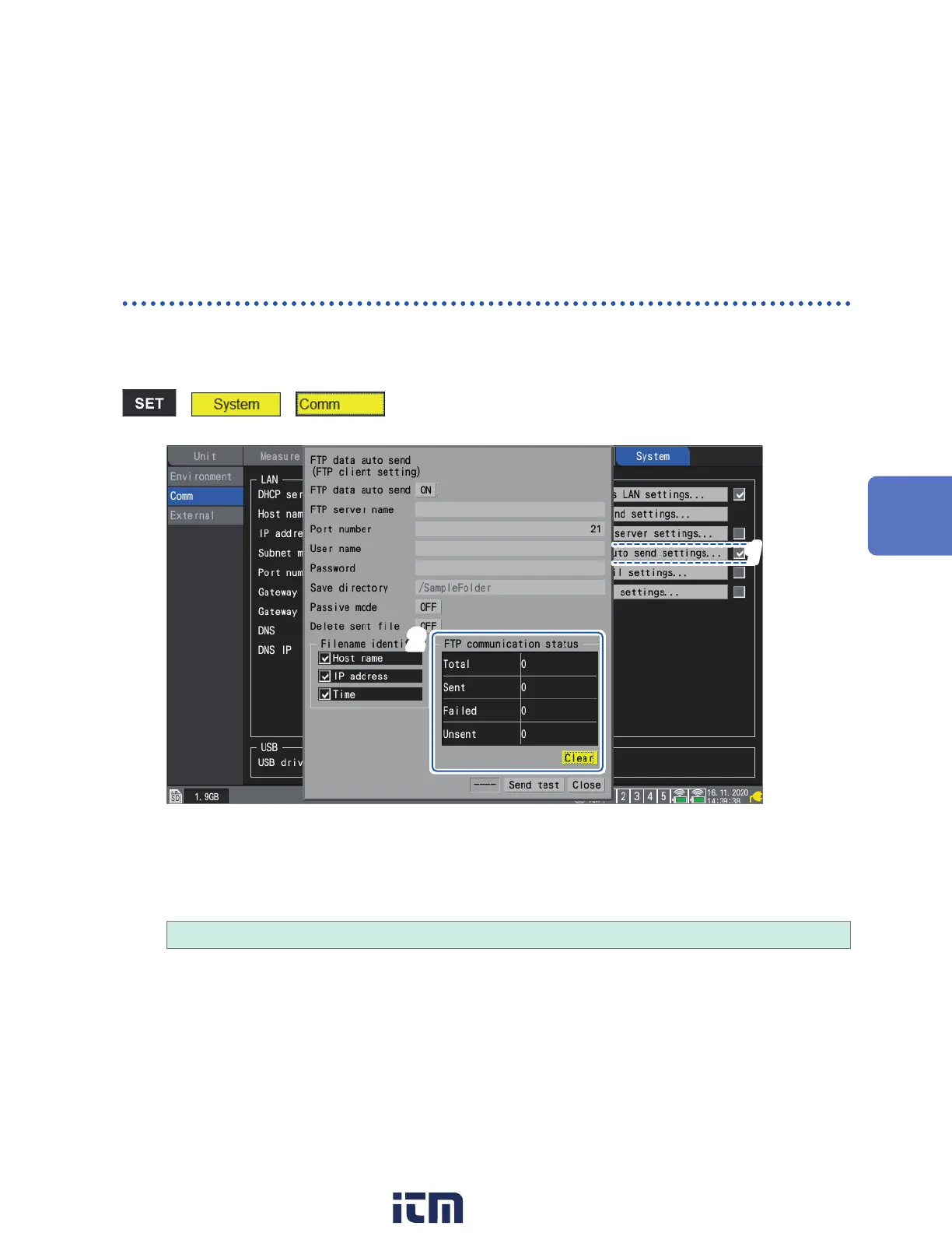 Press the ENTER key while [FTP data auto send settings...] is selected.
