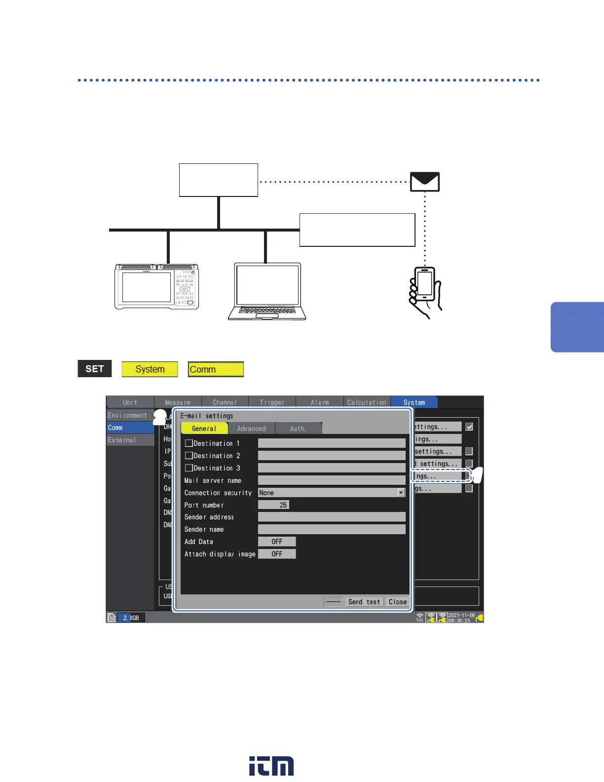 This example congures how to congure the instrument (logger@xyz.xx.xx) to send email to a