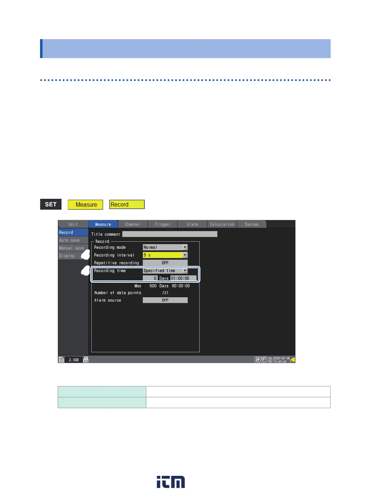 Recording time Specied time, 1 hour (0 Days 01:00;00)