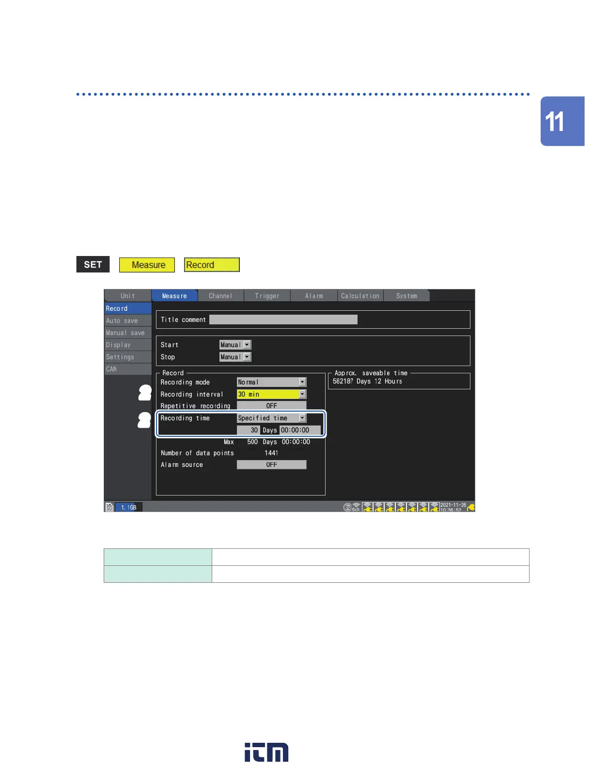 Recording time Specied time, 30 days (30 Days 00:00:00)