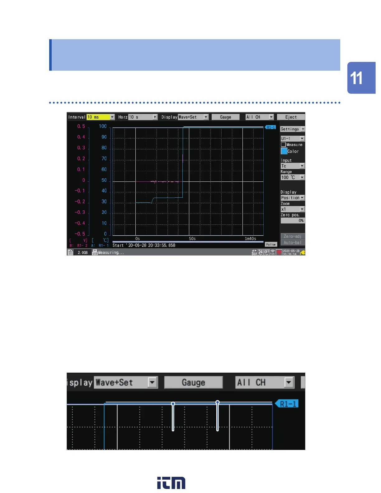 The instrument will draw the horizontal lines along the screen upper end for the parts of waveforms