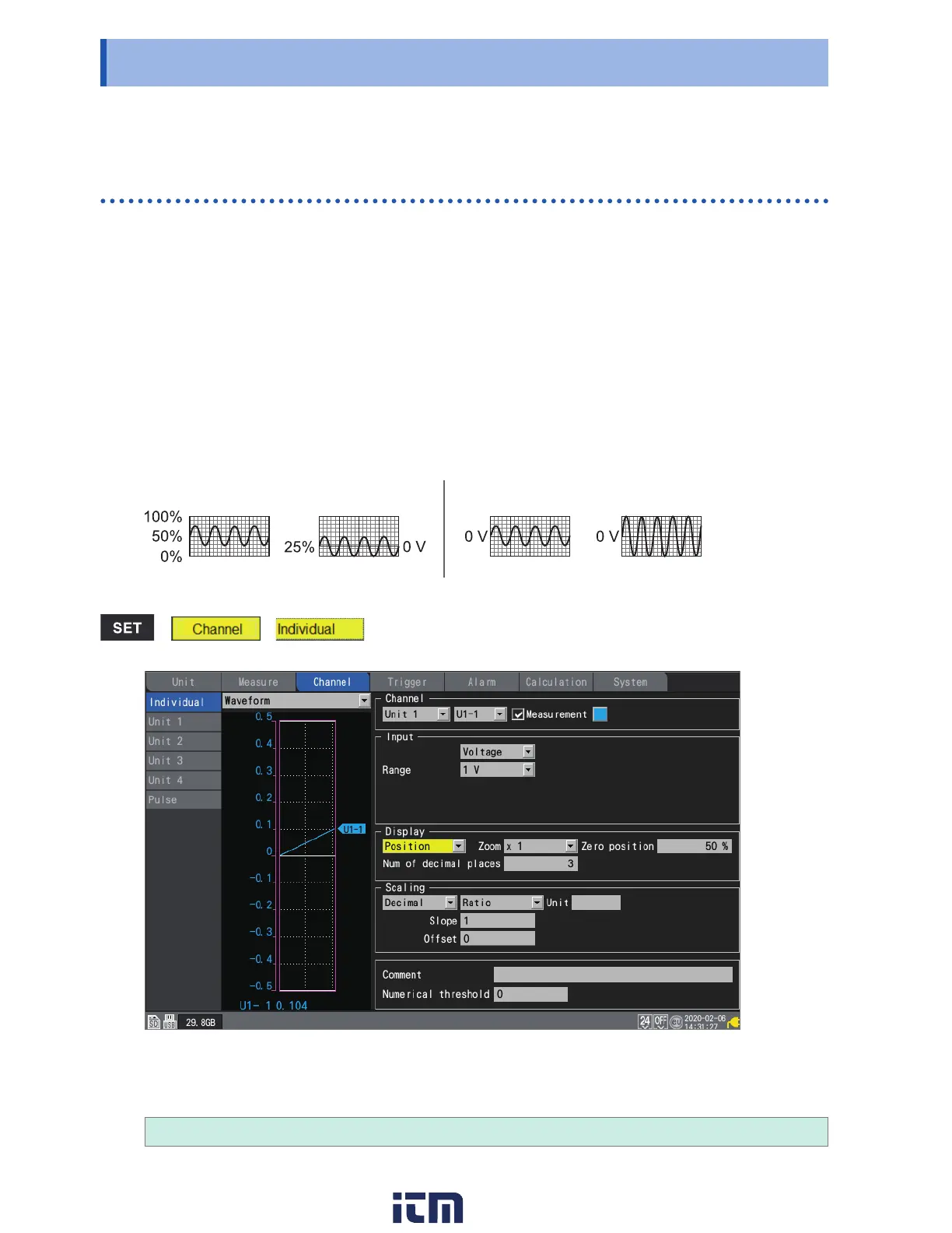 You can set the waveform display position and zoom factor for each channel on the individual