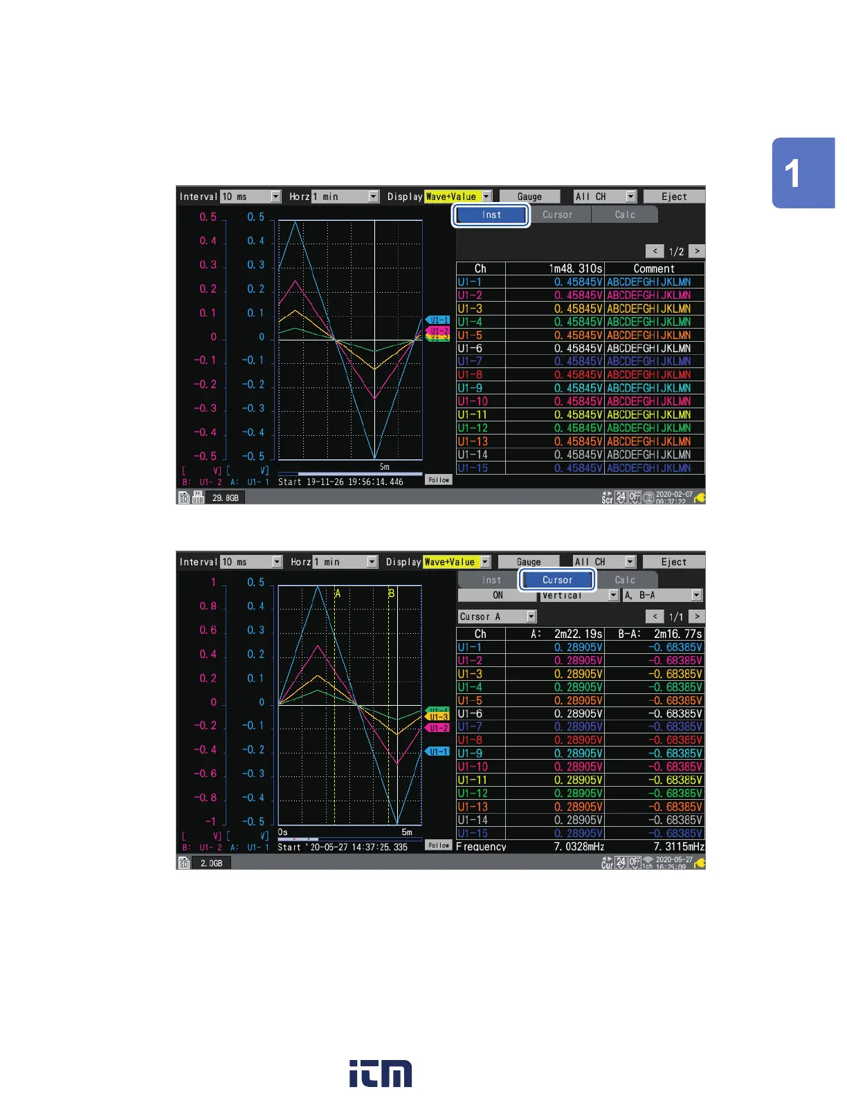 (1) Instantaneous: Measured values most recently obtained or shown on the right portion of the