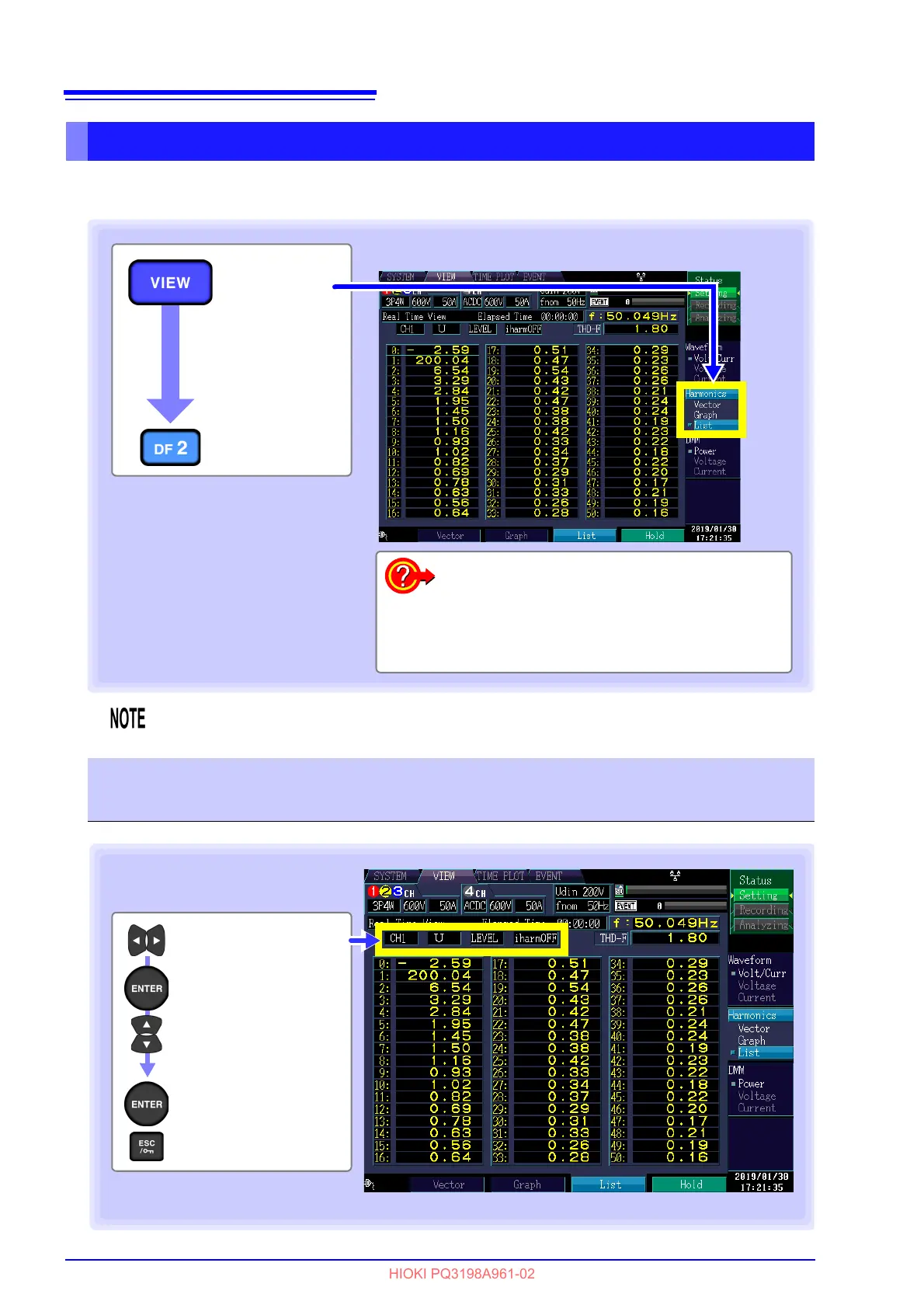When the 400 Hz measurement frequency is selected, harmonic analysis is performed up