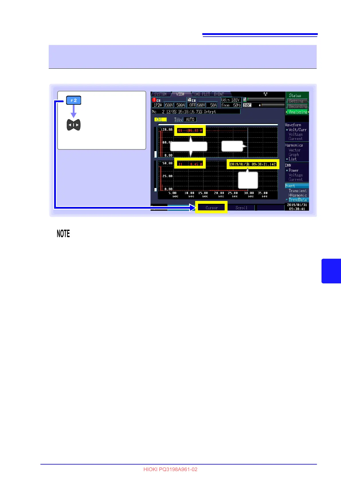 Viewing the value and time at the cursor position (Cursor measure-