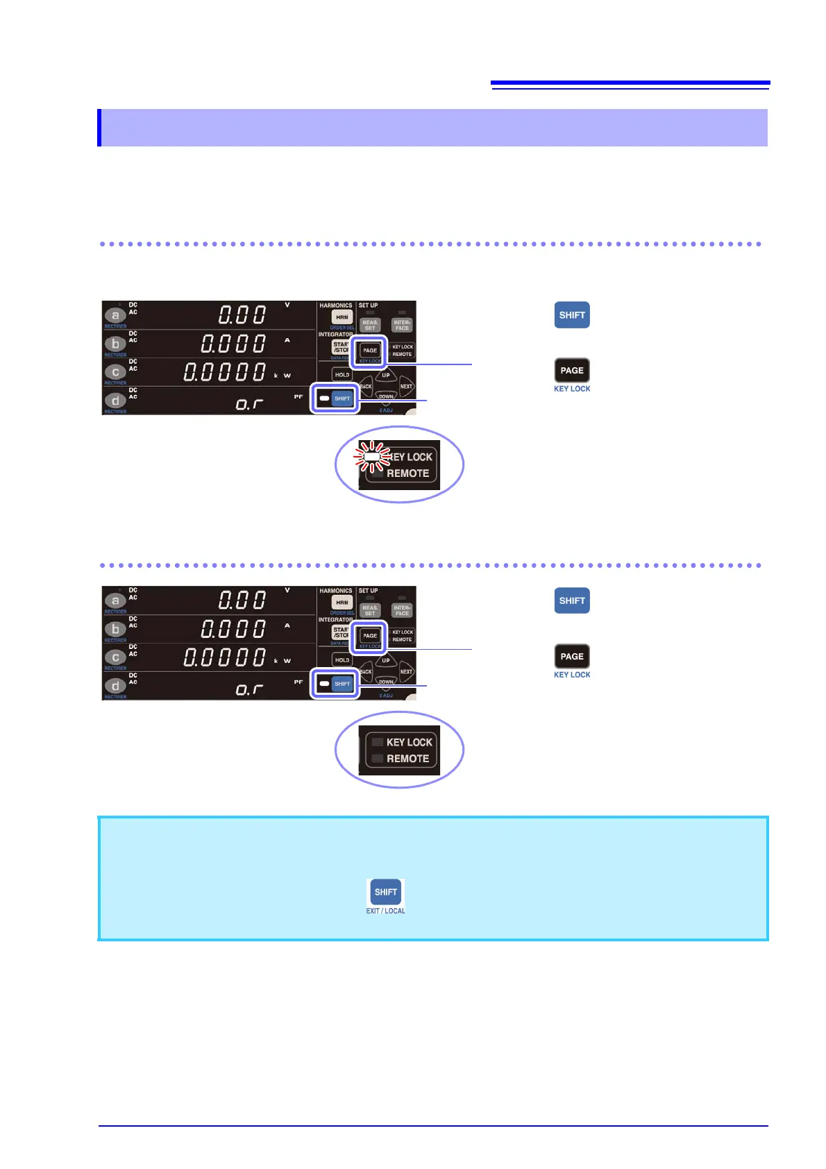 The instrument will not accept key lock input while the KEY LOCK lamp is lit up.