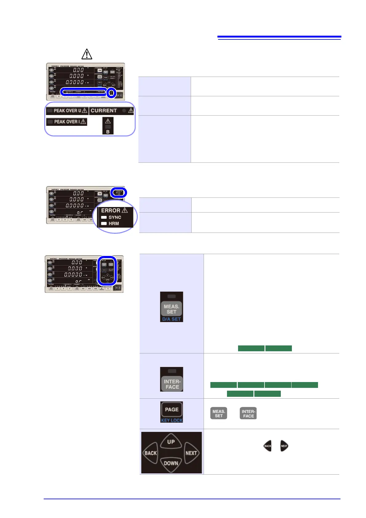 The following error lamps are lit up when the instrument is unable to perform mea-