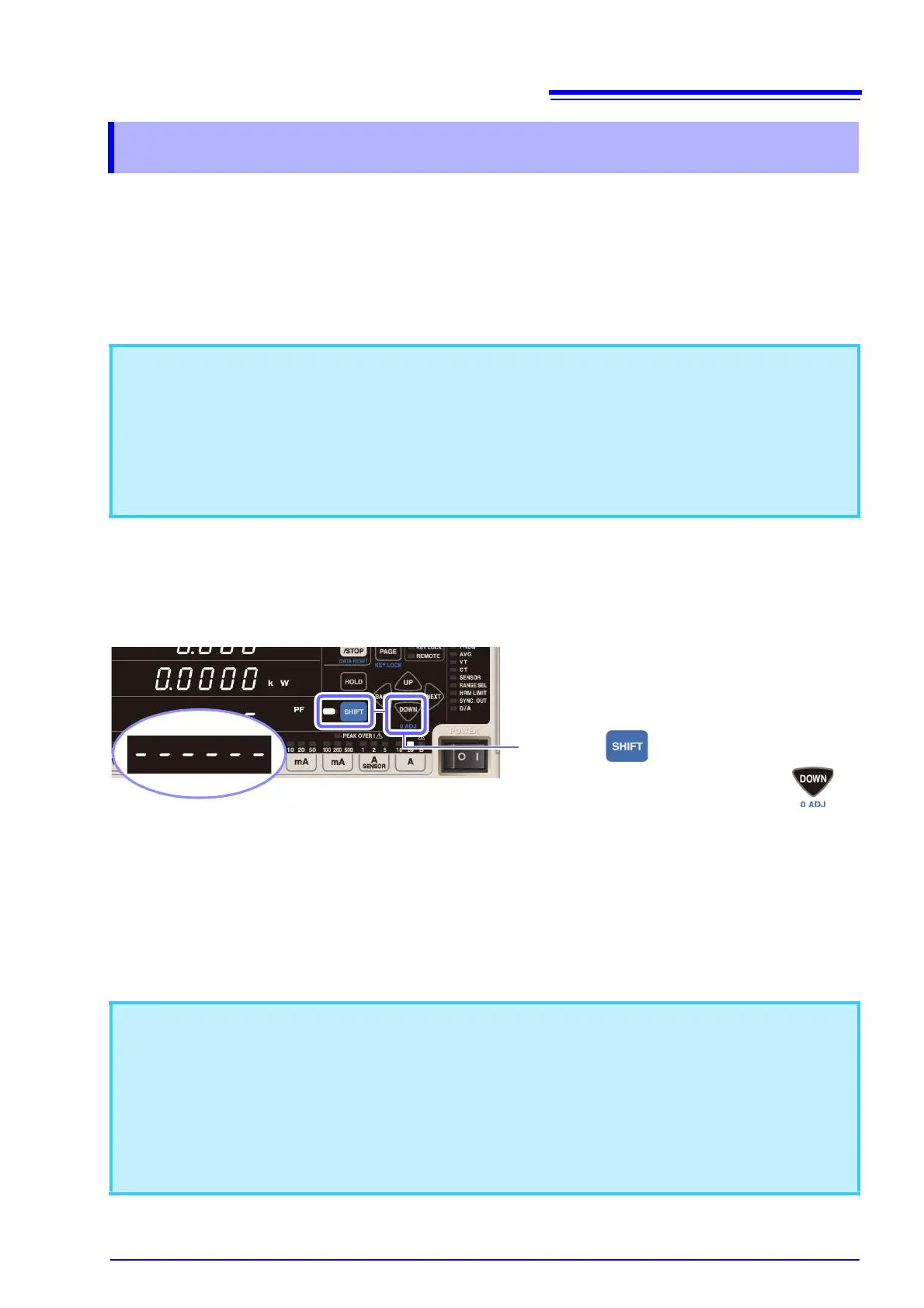 • Turn off power to the measurement lines and perform zero-adjustment with the instrument in the no-input