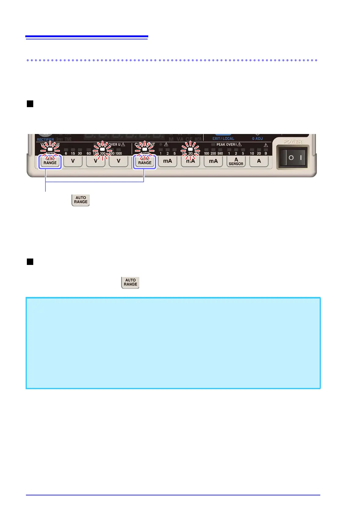 Selecting auto-range operation causes the range to be switched automatically according to the measured