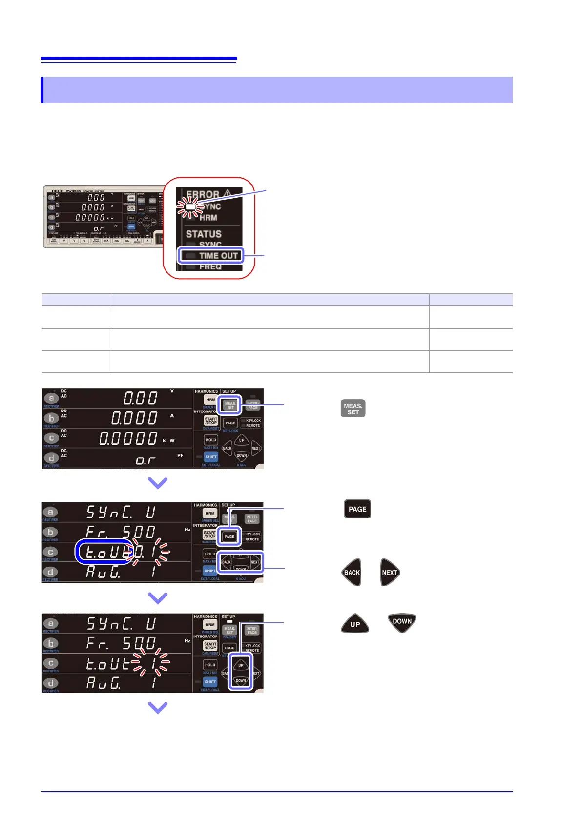 Setting Description TIME OUT lamp