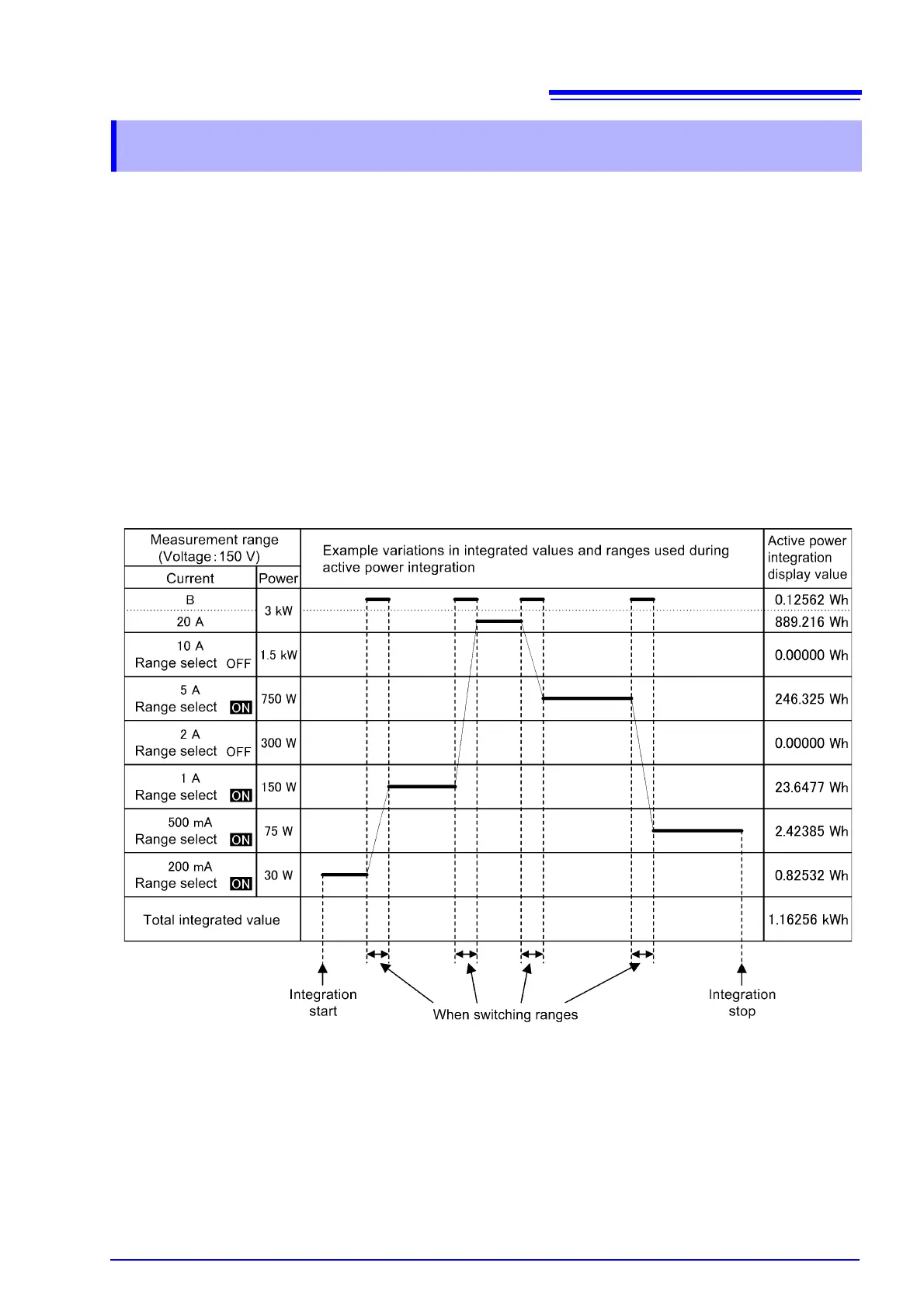 Integration operation uses the set measurement range. (When auto-range operation is enabled, integration is